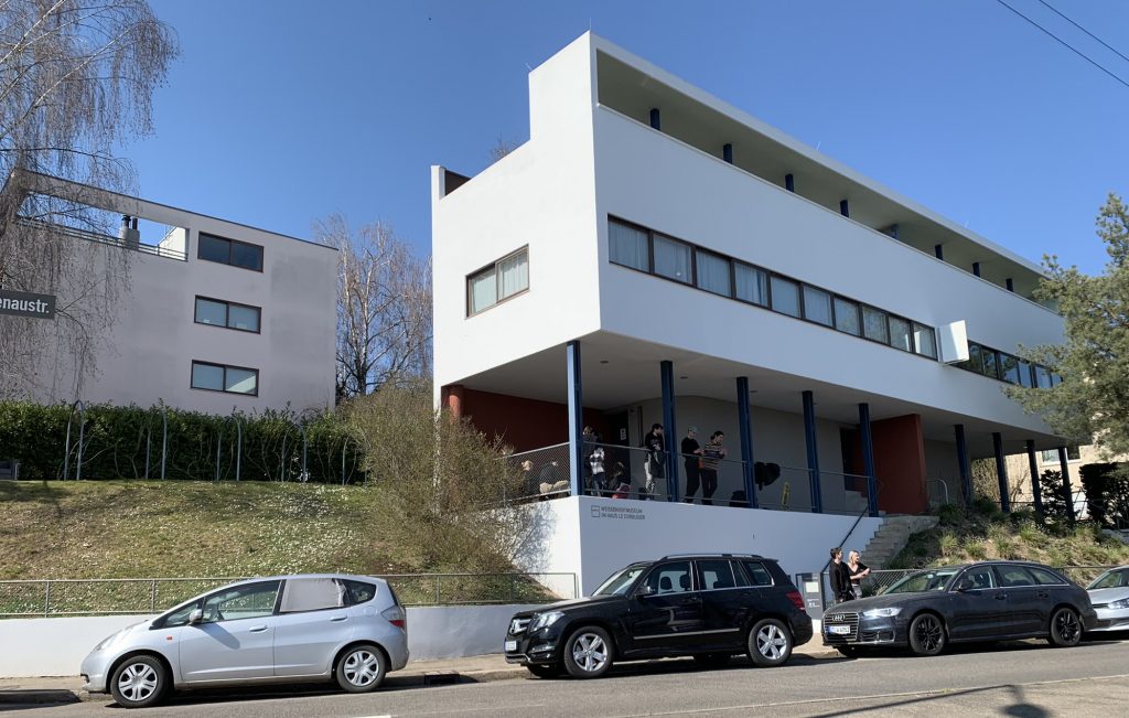 Uns fiel sofort die kubische Form und das Flachdach des Architekten Le Corbusier auf, der dieses Doppelwohnhaus mit seinem Vetter Pierre Jeanneret 1927 erbaute. 2016 wurde das Gebäude zum UNESCO Welterbe ernannt.
