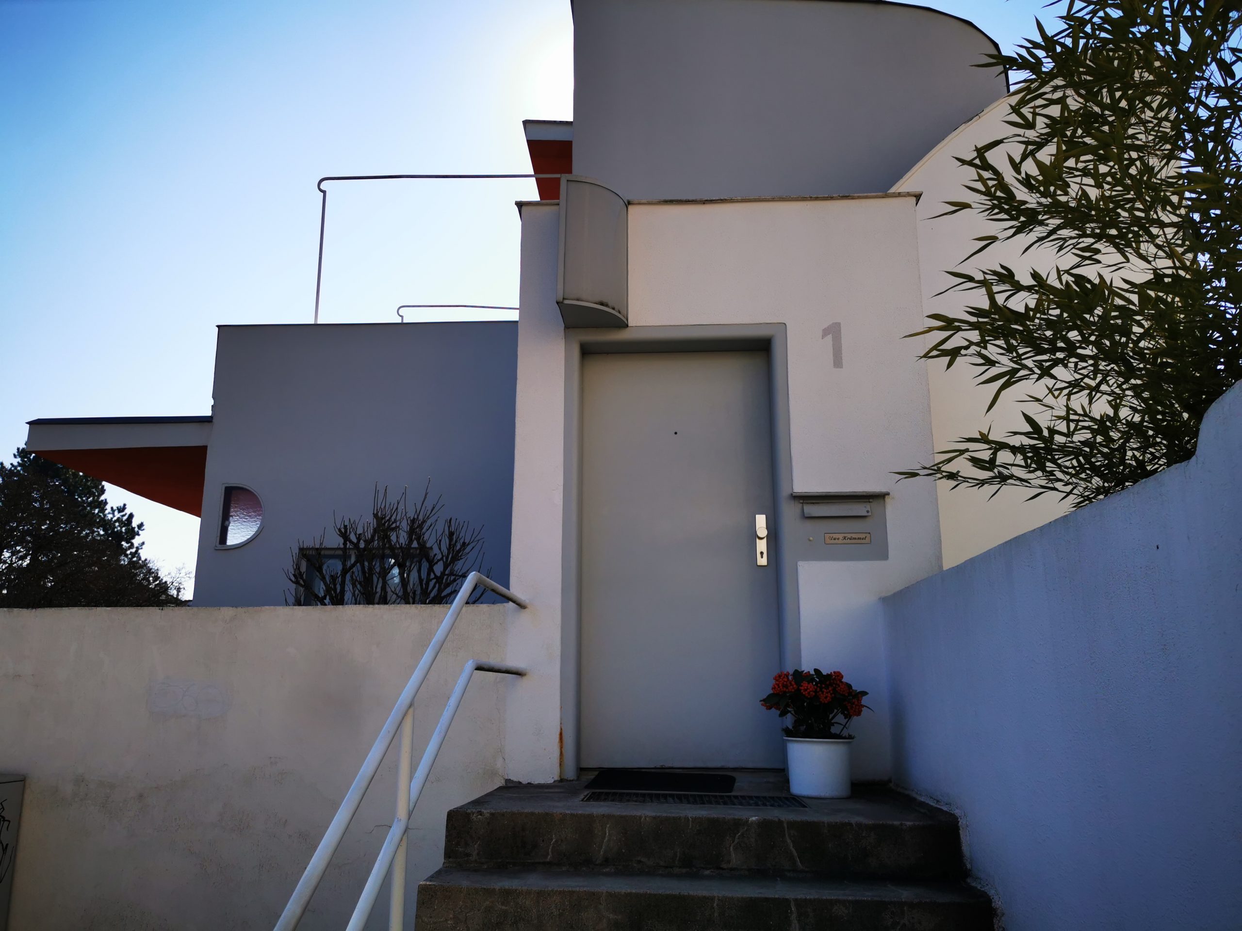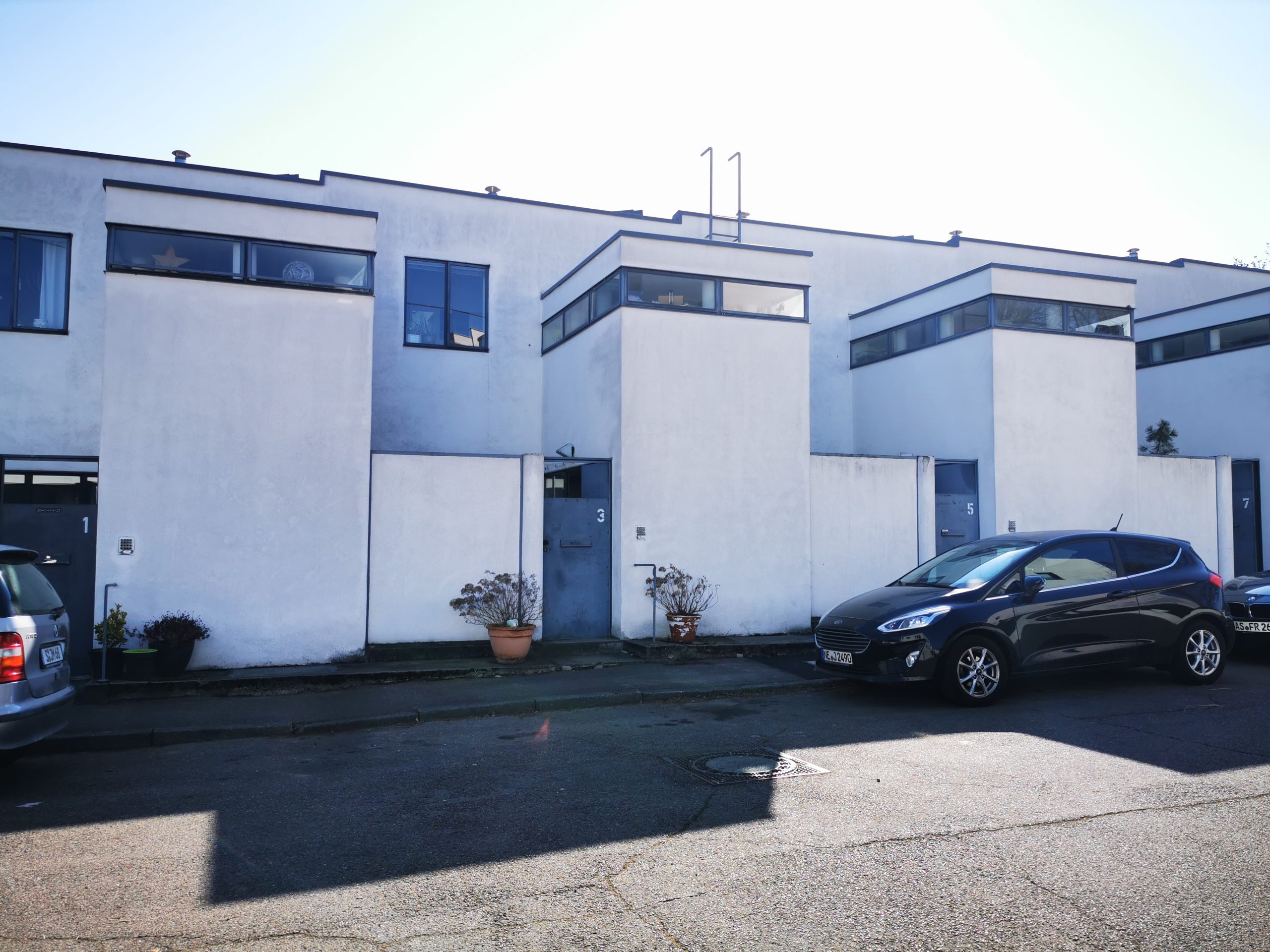 Beim Erkunden der Siedlung entdeckten wir, dass diese Satteldächer besitzen, was einen interessanten Kontrast ergibt (Bild 3). Die Häuser sind heute alle bewohnt, bis auf das Doppelwohnhaus von Le Corbusier und Pierre Jeanneret, welches durch das Weissenhof Museum frei zugänglich ist.