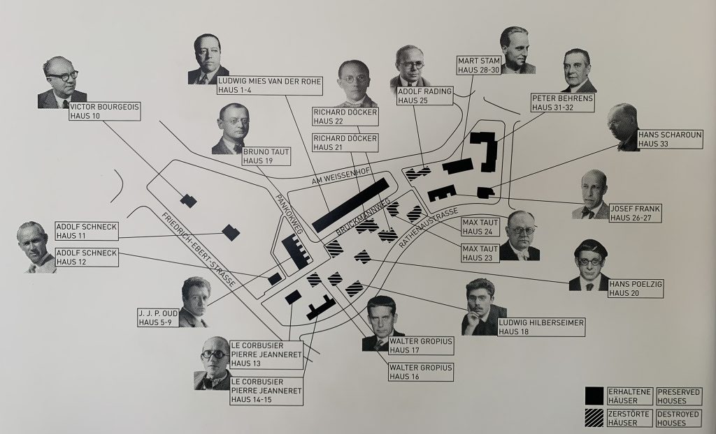 17 Internationale Architekten arbeiteten unter der künstlerischen Leitung von Ludwig Mies van der Rohe an dem Projekt, welches international große Bekanntheit erlangte.