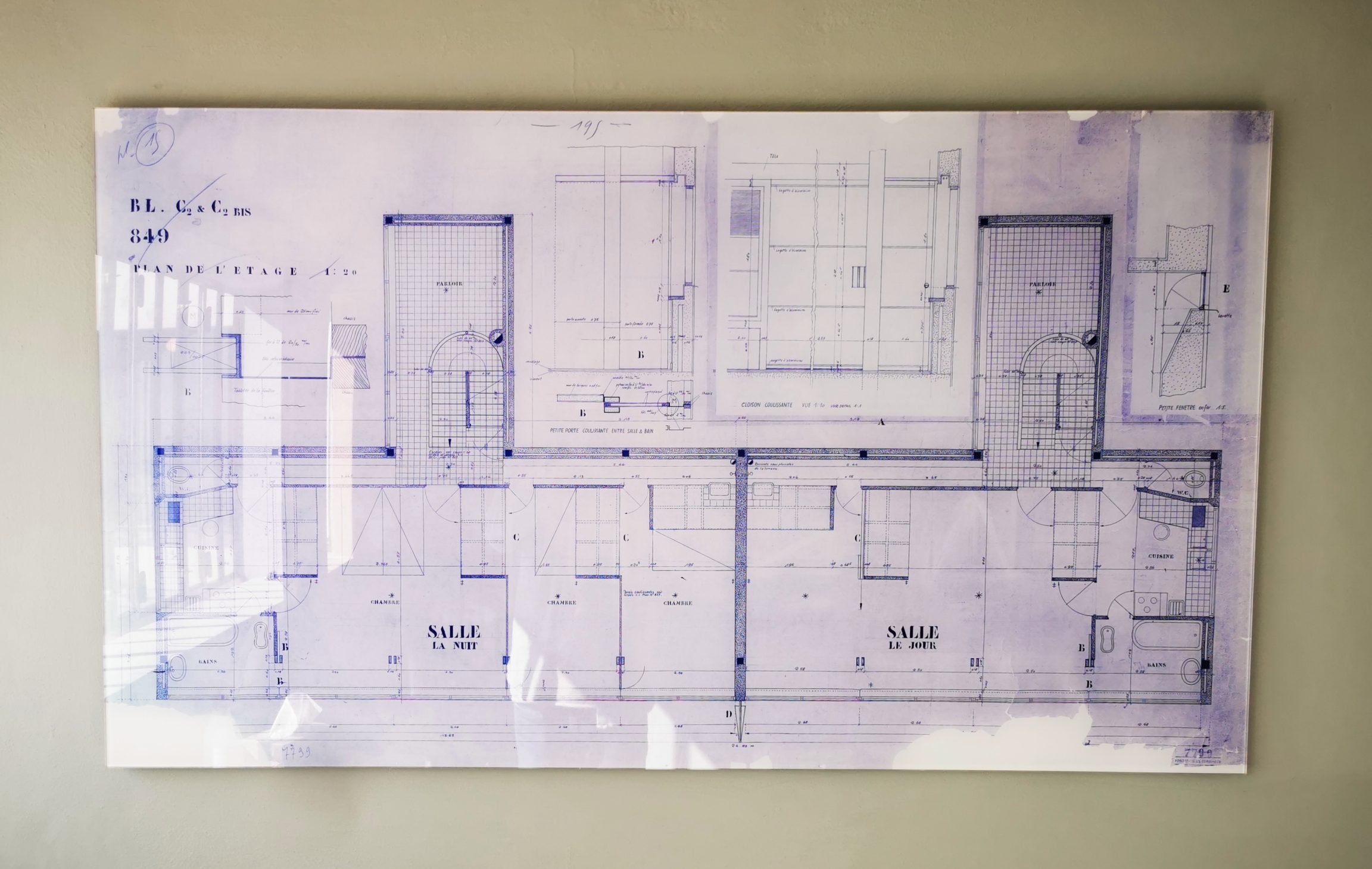 Einzigartig in der Weissenhofsiedlung war der „transformable“ Wohnraum im Obergeschoss. Am Tag diente er als Wohnzimmer, für die Nacht wurde er mit Schiebewänden in Schlafkabinen umgebaut. Eigens dafür wurden Schiebebetten auf Metallkufen entworfen, die am Tag in gemauerten Einbauschränken verschwanden.